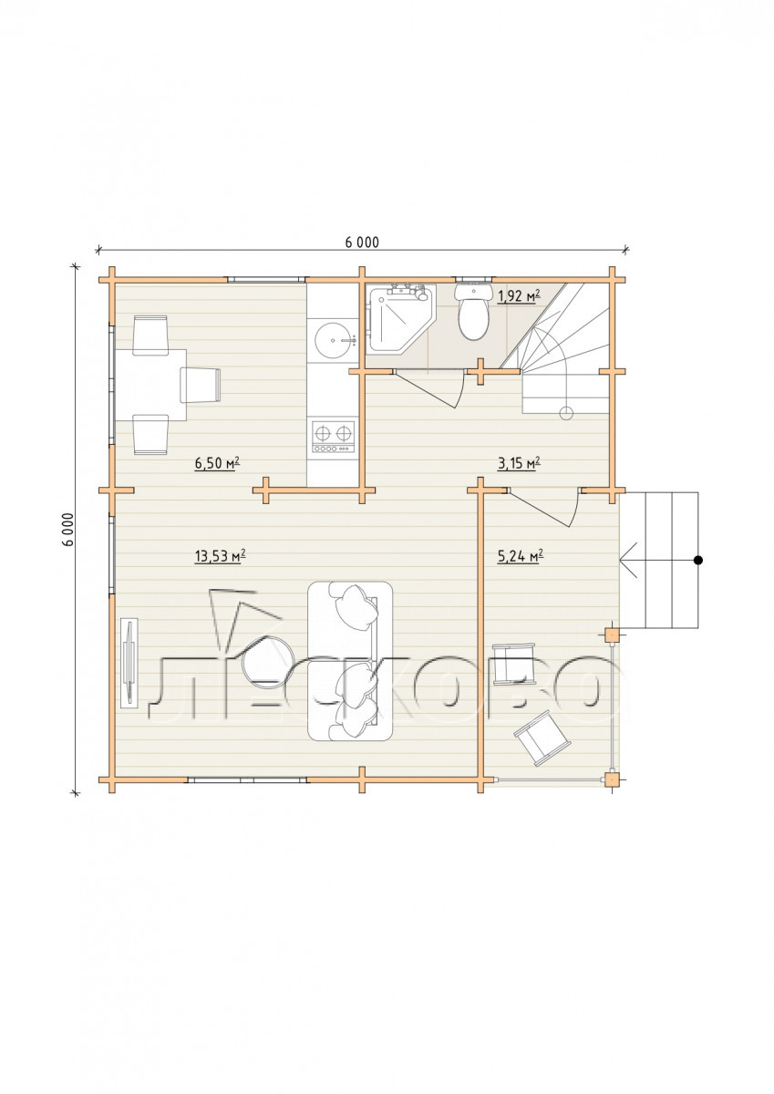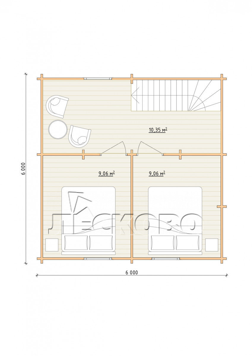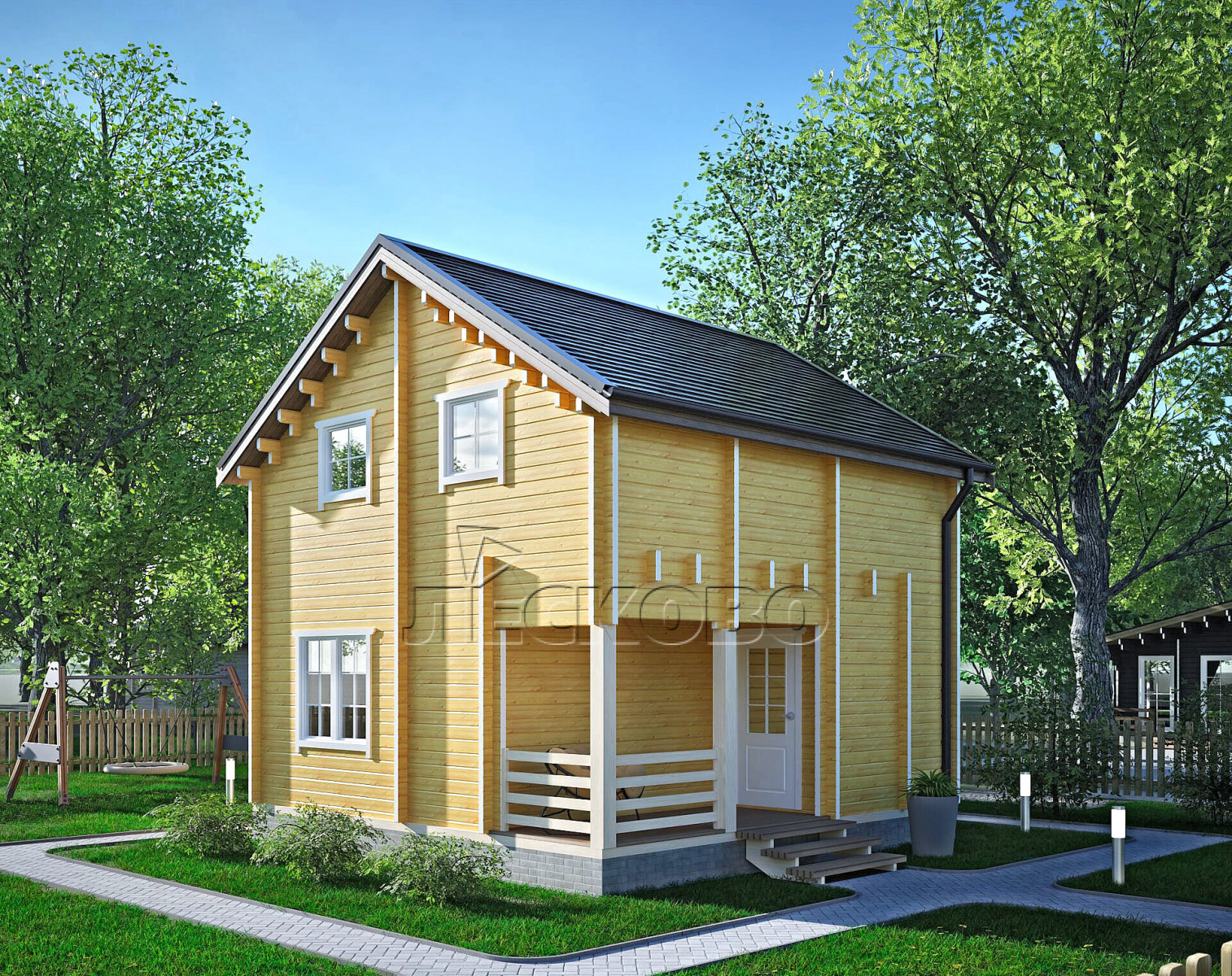 • Стеновой комплект: мини-брус камерной сушки 44мм×145 мм. с чашами под проект. Материал дерева — ель, сосна (ГОСТ 8486). Влажность 12-16%. Высота стен 2,16 м.;