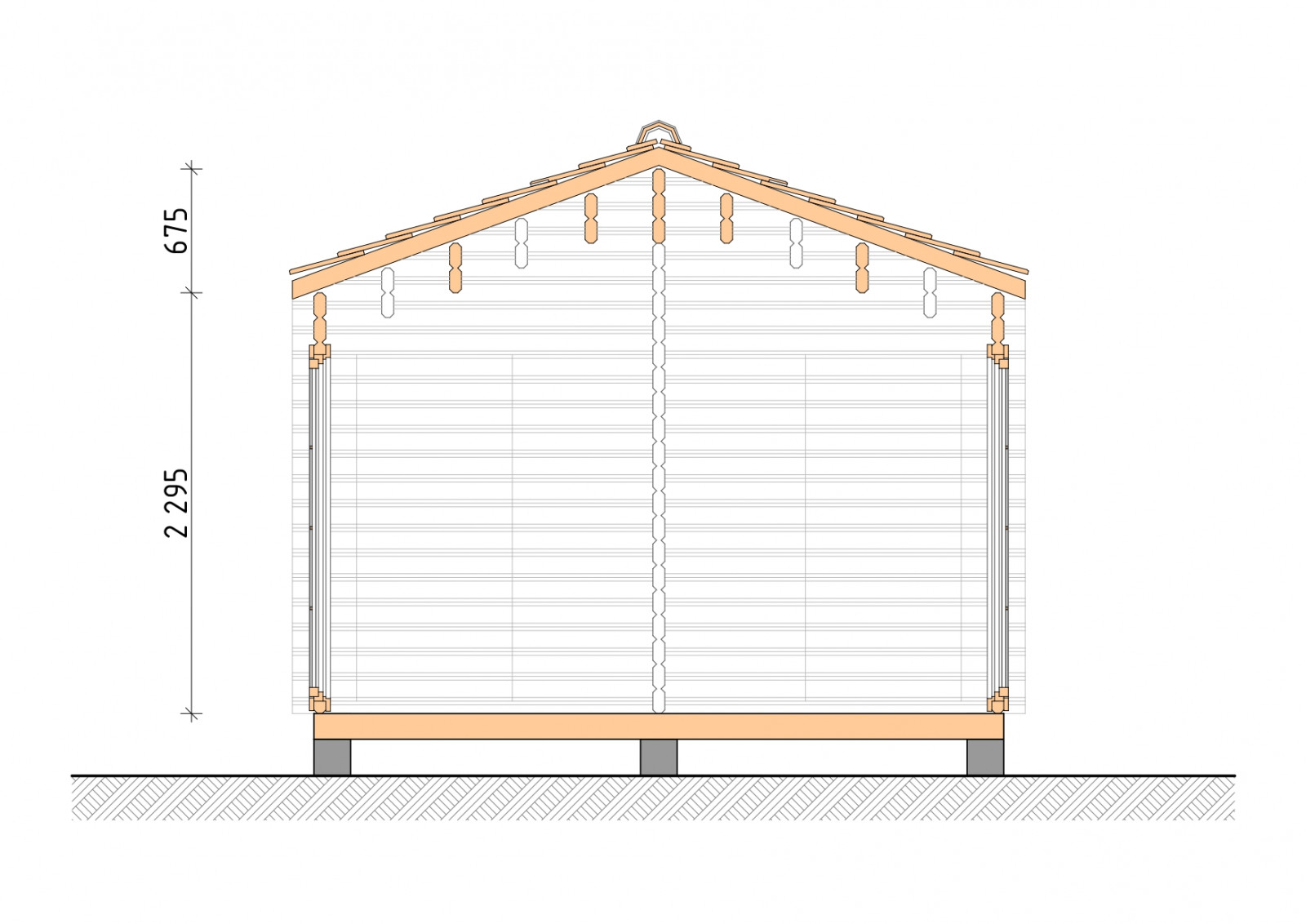 • Лаги, нижняя обвязка: доска 45×145 мм. камерной сушки 12-16%;