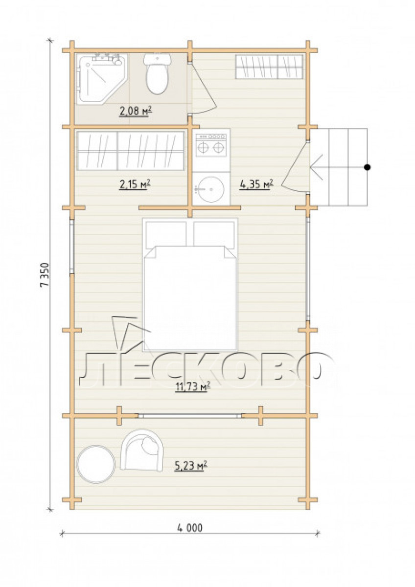 • Полы: половая доска 35 мм., камерной сушки;