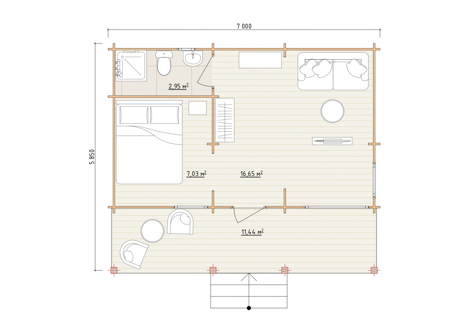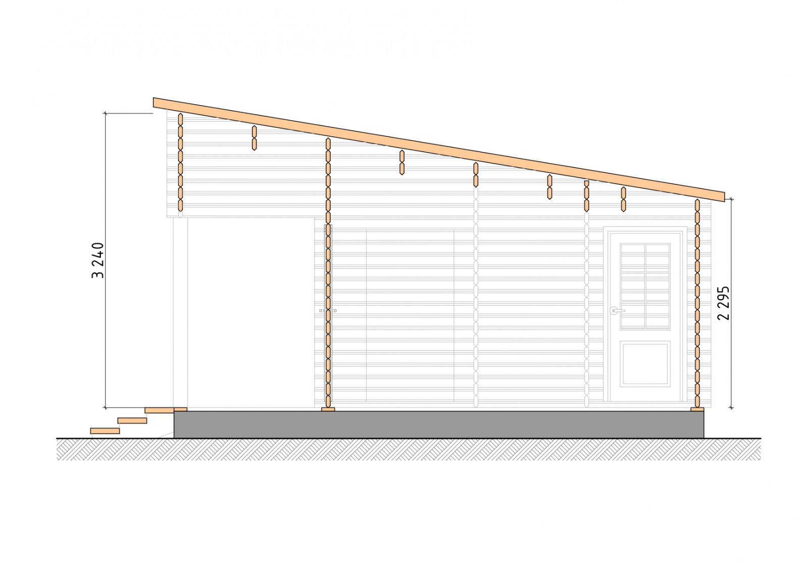• Лаги, нижняя обвязка: доска 45×145 мм. камерной сушки 12-16%;