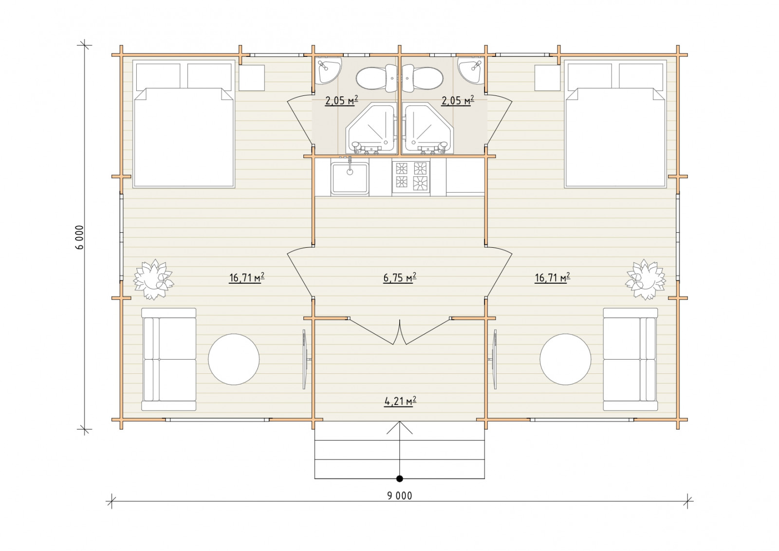 • Полы: половая доска 35 мм., камерной сушки;