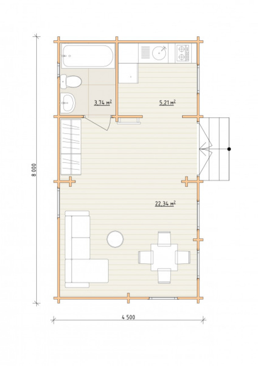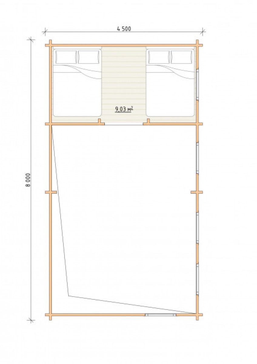 • Потолок: имитация бруса 20×135 мм., камерной сушки;