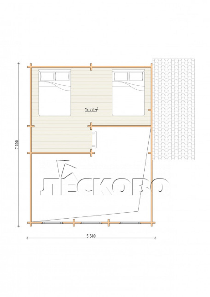 • Потолок: имитация бруса 20×135 мм., камерной сушки;