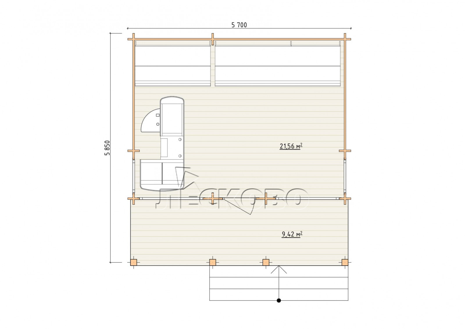 • Потолок: имитация бруса 20×135 мм., камерной сушки;